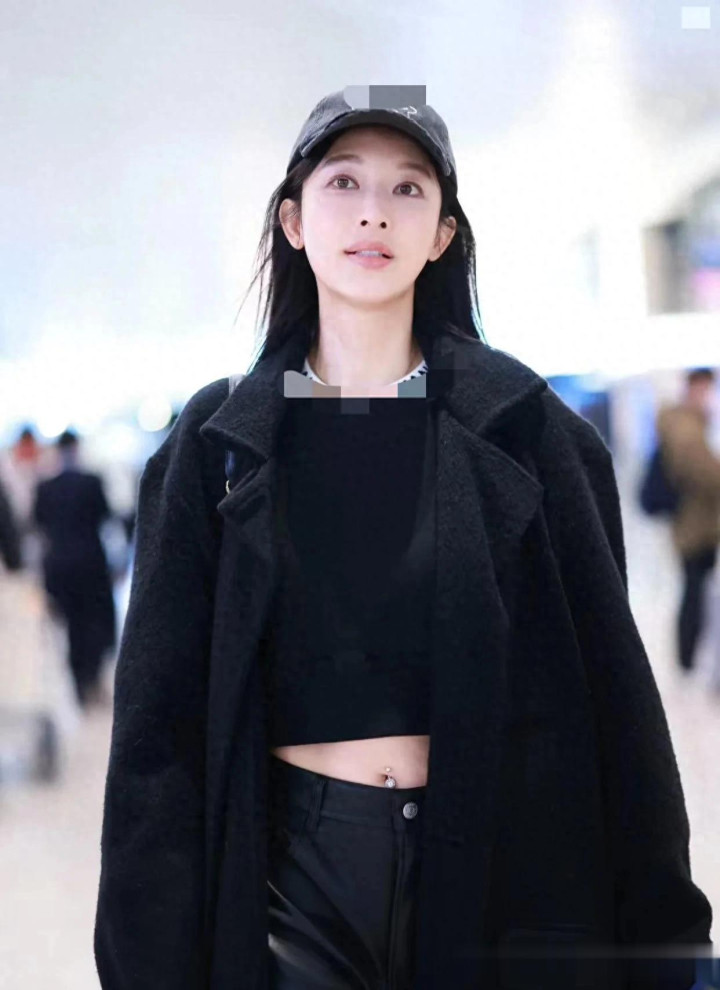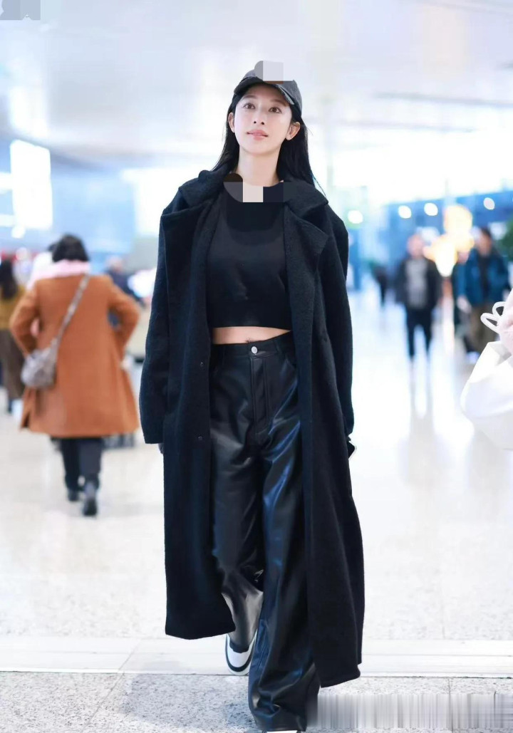 张俪不愧是穿搭高手! 黑色大衣+短T+皮质阔腿裤, 洋气又高