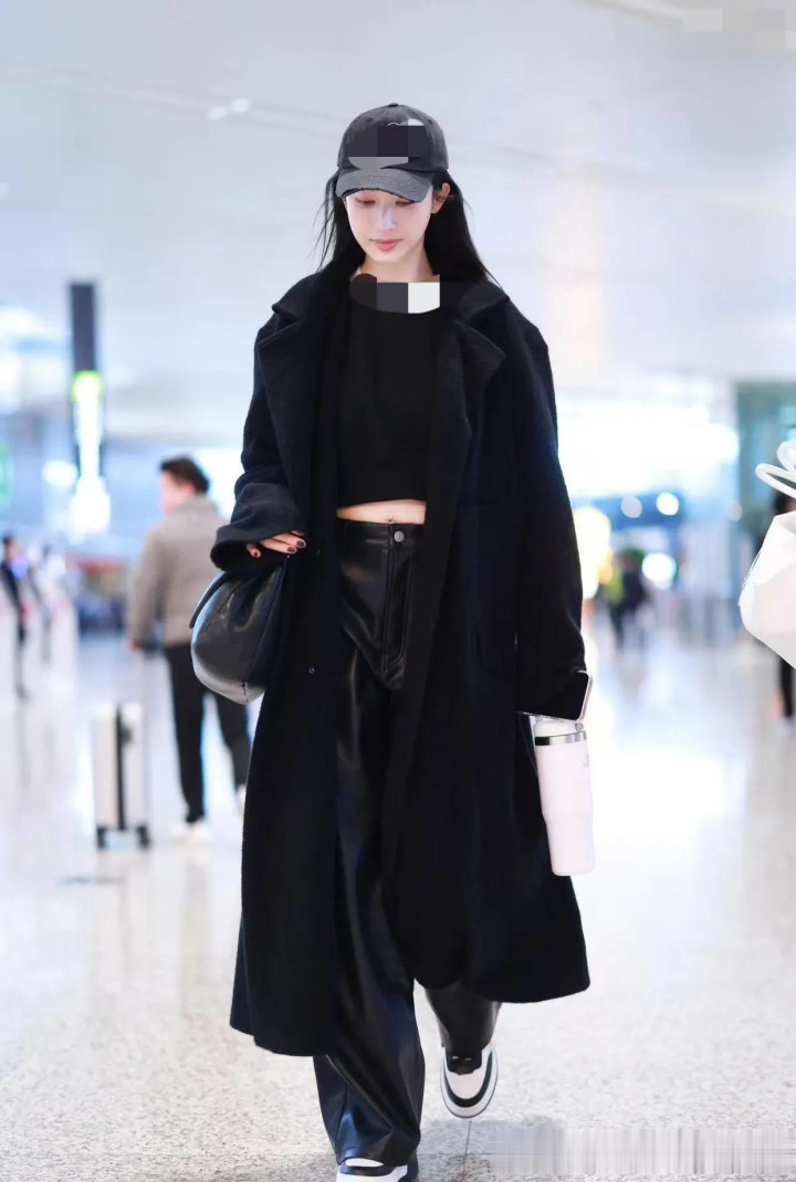 张俪不愧是穿搭高手! 黑色大衣+短T+皮质阔腿裤, 洋气又高级!